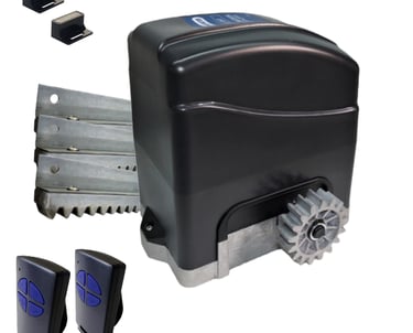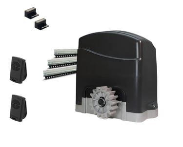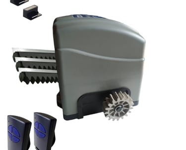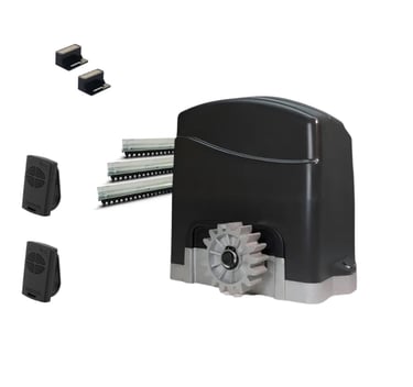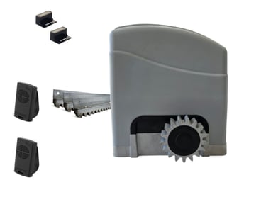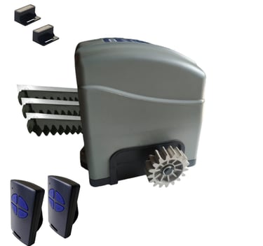Este equipo es de uso domiciliario para portones de hasta 900kg de peso, el mismo viene de manera estándar con 3 metros de cremallera de aluminio , 2 controles remoto, 2 llaves para destrabe manual en caso de corte de luz. manual y finales de carrera magnéticos. Su velocidad es 12 segundos los 3 metros (Con cierre suave)